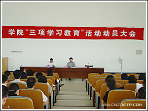 10月18日下午,学院召开了全体教师大会。会议由院党委副书记、院长李曙明同志主持并宣读了学院党委《关于开展“三项学习教育”活动的通知》;宣传部潘春胜同志传达了《全省高校“三项学习教育”专题会议精神》;党委书记童学敏就我院如何开展“三项学习教育”活动作了专题讲话。童书记指出,我院的“三项学习教育”活动要做到“五个结合”,要与文化大省建设相结合,要与校园文化建设相结合,要与加强与改进大学生思想政治教育活动相结合,要与当前学院的中心工作、制订五年发展规划相结合,要与保持共产党先进性教育活动相结合,以切实提高学习效果。童书记强调要把学习活动的立足点和出发点放在提高素质上,要通过学习和培训,使教师队伍思想上有新提高、作风上有新转变、工作上有新成效。并提出了明确方向、突出重点;联系实际、解决问题;加强修养、改进作风;积极稳妥、注重实效;建章立制、常抓不懈等基本要求。最后,李曙明院长结合开展“三项学习教育”活动,提高课堂教学质量作了部署。他分析了开学以来教学工作情况,特别是目前课堂教学中所存在的问题,提出了学院下一步加强青年教师业务培训、切实提高教学质量的工作思路。