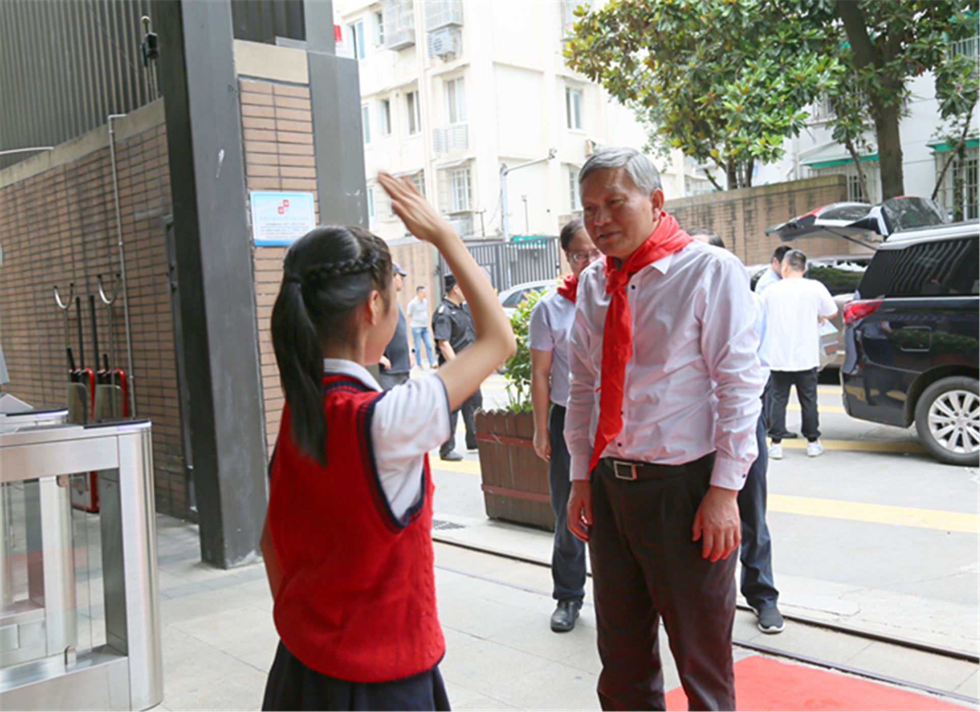 “我将来想当一名医生,医生救死扶伤,是个很光荣的职业……”听到一名小讲解员的梦想后,毛宏芳为她点赞,并与她拉勾约定:“我来做你追梦的见证者,希望你保持恒心和毅力,朝着梦想勇敢前进!”最后,毛宏芳与师生们合影留念。他叮嘱学校老师牢记立德树人根本任务,坚守为党育人、为国育才的初心使命,不断提升自身能力素养和水平,为少年儿童扣好人生第一粒扣子,为每个孩子的幸福成长奠基。