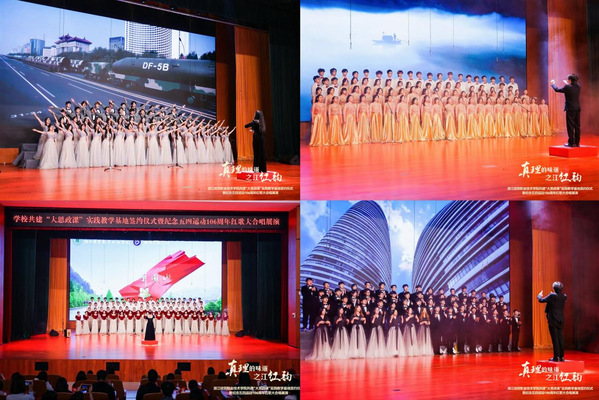4月29日,学校在产教融合大楼报告厅举行“真理的味道・之江红韵”——“大思政课”实践教学基地签约仪式暨纪念五四运动106周年红歌大合唱展演。丽水市供销社理事会副主任吴积雷,丽水市供销社机关党委专职副书记杨小明,景宁县供销社党组书记、理事会主任高卫和,庆元县供销社党组成员、理事会副主任周佳,“五四宪法”历史资料陈列馆副馆长夏文玲,遂昌县挺进培训中心执行校长吕春和等特邀嘉宾,学校党委书记劳赐铭、校长陈德泉出席活动。学校领导班子其他成员、相关职能处室负责人、教师代表与千余名学生齐聚一堂,以青春之名传承五四精神,以共建之势打造大思政育人新格局。